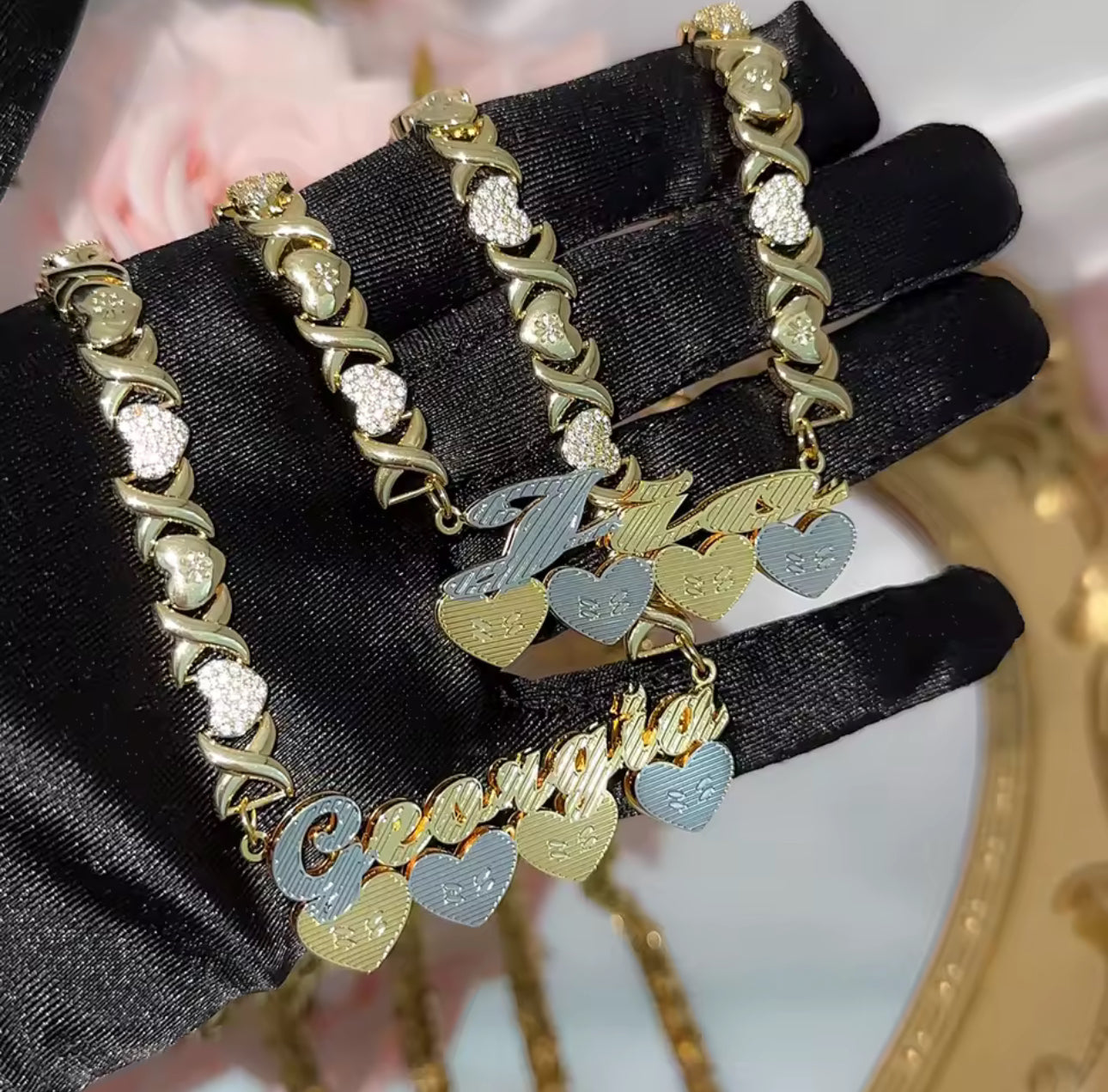 Our Custom Double Name Plate Necklace is the perfect statement piece for anyone who wants to keep their loved ones close — or make their own name shine twice as bold. With elegant heart details and layered nameplates, this necklace is fully personalized to your style and your story.